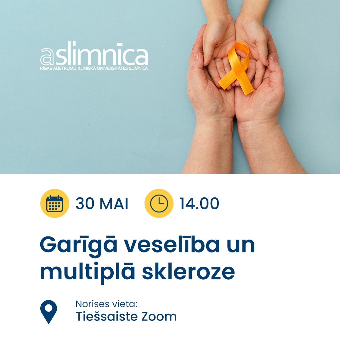 Katru gadu maija beigās tiek atzīmēta Pasaules multiplās sklerozes diena. Arī Rīgas Austrumu klīniskās universitātes slimnīcas (Austrumu slimnīca) Neiroloģijas un neiroķirurģijas klīnikas vadošie neirologi un Multiplās sklerozes vienības speciālistu komanda aicina ikvienu multiplās sklerozes pacientu un citus interesentus pievienoties Zoom tiešsaistes vebināram “Garīgā veselība un multiplā skleroze”, kas notiks 2025. gada 30. maijā plkst. 14:00. Tajā eksperti stāstīs par biežākajiem garīgās veselības traucējumiem, kā arī dalīsies zināšanās un jaunākajās atziņās par kognitīvi biheiviorālo terapiju un integratīvās medicīnas pieeju multiplās sklerozes ārstēšanā. Vebināra noslēgumā būs iespēja dzirdēt arī multiplās sklerozes pacientes personīgo pieredzes stāstu un atziņas par dzīvi ar šo slimību.