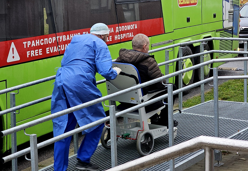 Ukrainas karā cietušie pacienti uz Austrumu slimnīcu tiek atgādāti, pateicoties labdarības projekta “M-Help.com” dibinātāju Arvja Reketa un Mārtiņa Medinieka privātai iniciatīvai. Savukārt Georgija Logvinska labdarības fonds, kas darbojas Ukrainā, ir aprīkojis un pārbūvējis autobusu, ar kuru tiek nodrošināta šo pacientu transportēšana.
